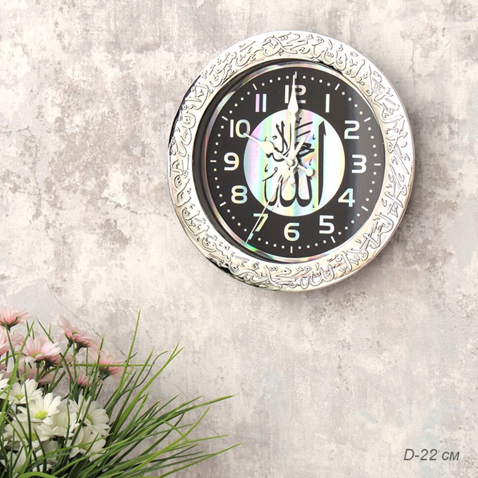 «706822 (в уп.60шт.) - Часы настенные, круглые Мусульманские D=22см. /NE-8308B/, материал: пластик, стекло, металл.»