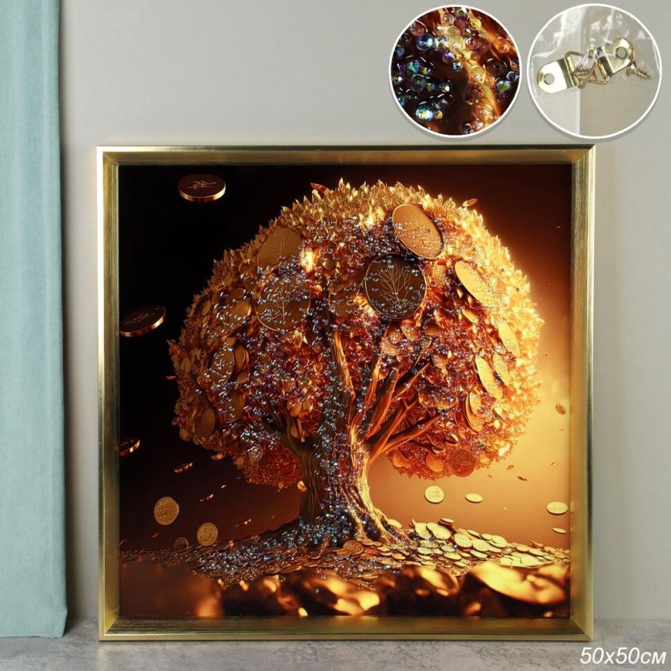 «751175 (в уп.24шт.) - Картина 50х50см. Денежное дерево / CX-0288 / стразы, материал: ДВП, полимер.»