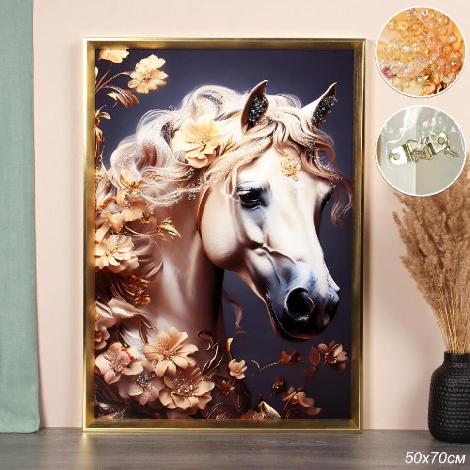 «752042 (в уп.18шт.) - Картина 50х70см. Лошадь / CY2-190 / стразы, материал: ДВП, полимер.»